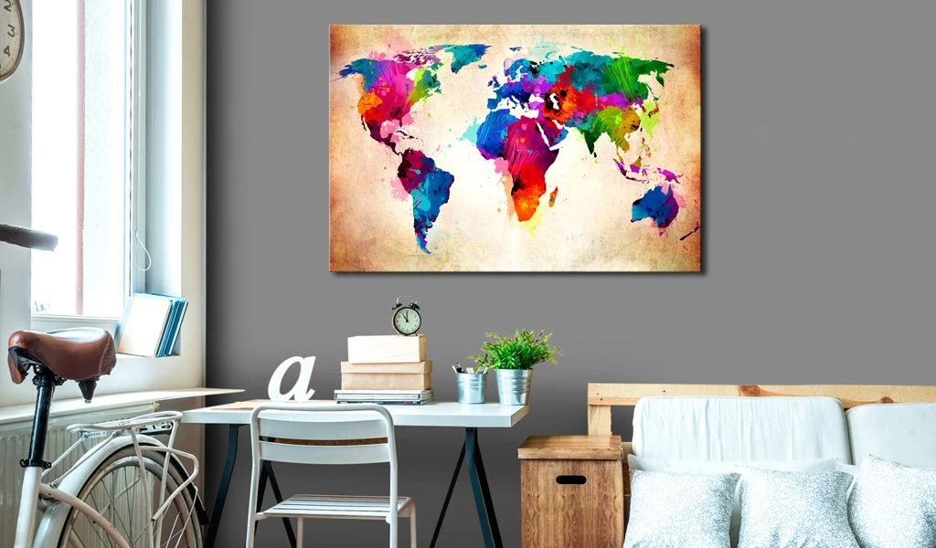 Afbeelding op kurk “Afbeelding op kurk – Colourful Ranger [Cork Map]” is veel lichter dan traditionele wanddecoratie. Zo kunnen prikborden worden opgehangen op iedere willekeurige plaats thuis of op kantoor. Het bedrukte doek wordt aangebracht op de kurkplaat. Zo krijgt de print duidelijke kleuren en geeft het de kleinste details weer. Prik er punaises of notities in en creëer zo je individuele ontwerp op de muur!