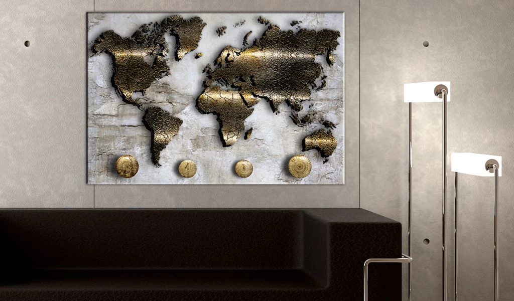 Afbeelding op kurk “Afbeelding op kurk – Golden Journey [Cork Map]” is veel lichter dan traditionele wanddecoratie. Zo kunnen prikborden worden opgehangen op iedere willekeurige plaats thuis of op kantoor. Het bedrukte doek wordt aangebracht op de kurkplaat. Zo krijgt de print duidelijke kleuren en geeft het de kleinste details weer. Prik er punaises of notities in en creëer zo je individuele ontwerp op de muur!