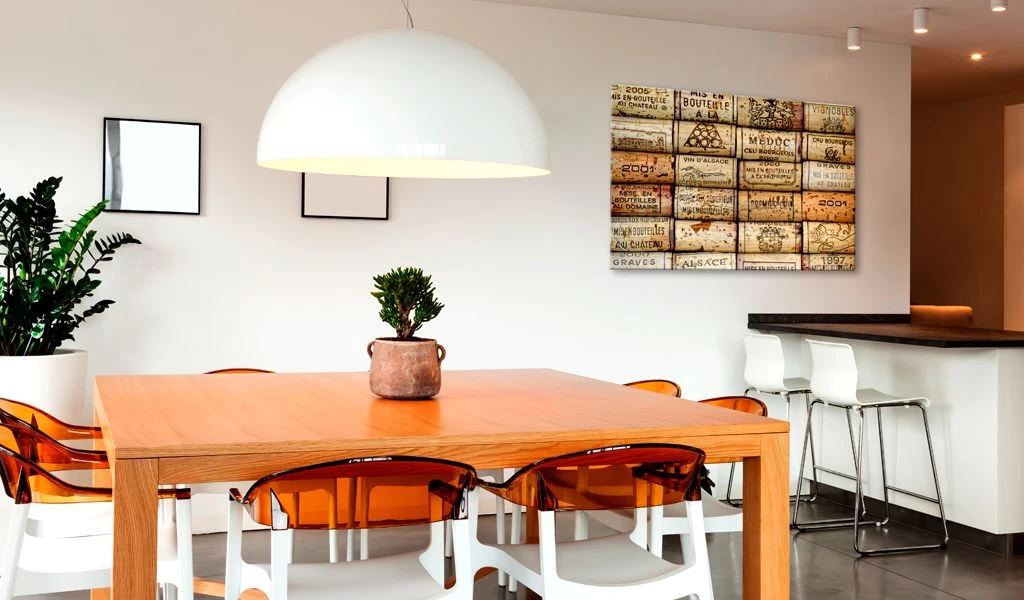 Afbeelding op kurk “Afbeelding op kurk – Vineyard of Memories [Cork Map]” is veel lichter dan traditionele wanddecoratie. Zo kunnen prikborden worden opgehangen op iedere willekeurige plaats thuis of op kantoor. Het bedrukte doek wordt aangebracht op de kurkplaat. Zo krijgt de print duidelijke kleuren en geeft het de kleinste details weer. Prik er punaises of notities in en creëer zo je individuele ontwerp op de muur!