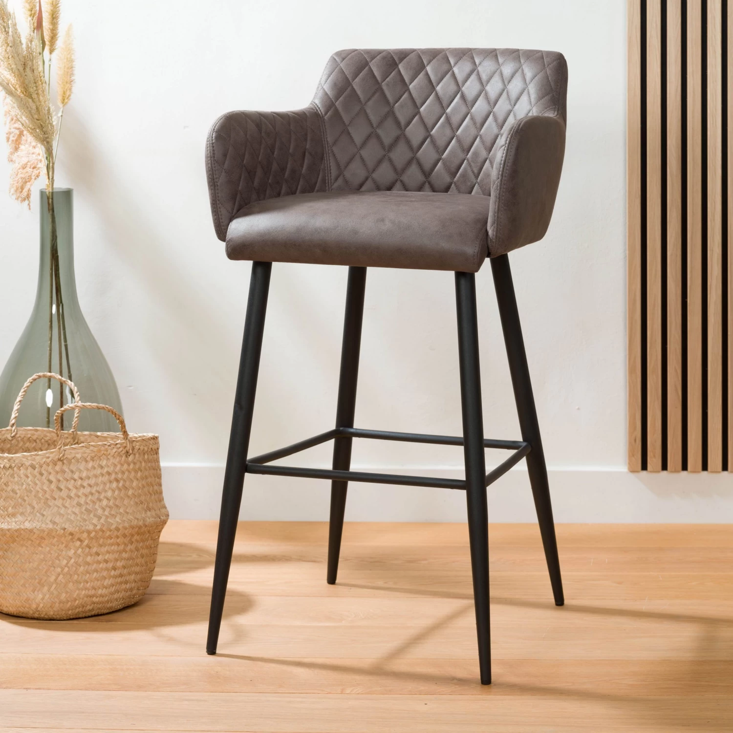 Rose barkruk StoneEen barkruk met benenDe Rose-barkruk is eigenlijk te mooi om ‘kruk’ te noemen. Dit is feitelijk een luxe stoel op hoge poten. Of moeten we ‘benen’ zeggen? Hoe dan ook: met dit edele zitmeubel gooi je zeker hoge ogen!Oogstrelend en comfortabelJe zit als een prins of prinses op deze barkruk. Hij combineert namelijk het luxueuze van onze geliefde Rose-stoel met het gemak van een barkruk. Je pakt hem moeiteloos op en zet ‘m daar waar hij nodig is, zoals je ook met een gewone barkruk zou doen. Maar zodra je erop gaat zitten ervaar je een ongekende mate van comfort. Steun aan de zijkanten en en de achterkant, en de dikke vulling in het zitgedeelte zorgt nog eens voor extra gerief. Een genot om naar te kijken én om te gebruiken.Ideaal voor zowel huisbar als horecaHet ruitpatroon op de binnenkant van de leuningen geeft deze barkruk een klassieke uitstraling. Ideaal om rond een hoge tafel te zetten. Of bij een knusse huisbar. Maar ook in de horeca zou hij het geweldig doen. Immers: klanten die lekker zitten, blijven langer en bestellen meer! Daarnaast is de hoogte van 75 cm perfect voor aan, bij en onder de meeste gangbare tafels en togen. Tevredenheid gegarandeerd!Rank maar sterkDe Rose-barkruk mag dan rank ogen met zijn hoge benen, maar hij is oersterk. Hij kan maar liefst 150 kilo dragen. Makkelijk in elkaar te zetten is hij trouwens ook. Geen moeilijk gedoe: een paar schroefjes aandraaien en hij staat. En dan staat hij ook goed. Reinigen is geen probleem. Voor de zekerheid kun je bij ons een spray of schoonmaakset bestellen om de stof in tiptop conditie te houden. Mooie dingen wil je goed verzorgen, toch?Kenmerken Rose-barkruk