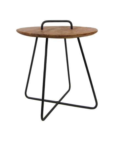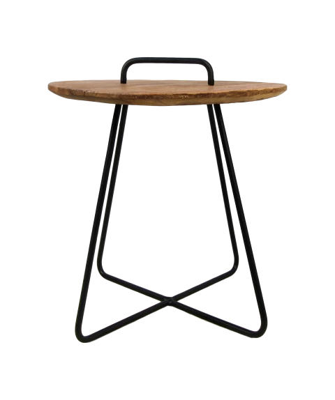 De bijzettafel Madison is gemaakt van teakhout en heeft een zwart ijzeren frame. Met de metalen handgreep, die op het tafelblad is bevestigd, kan de tafel eenvoudig verplaatst worden.