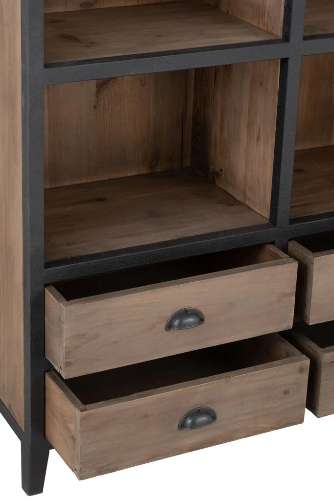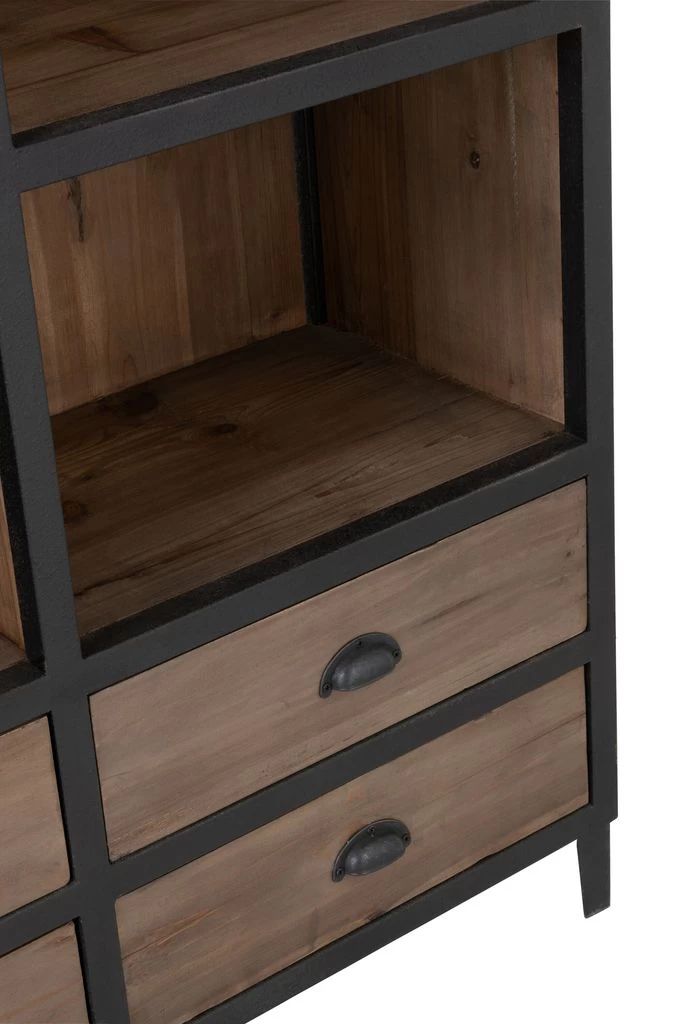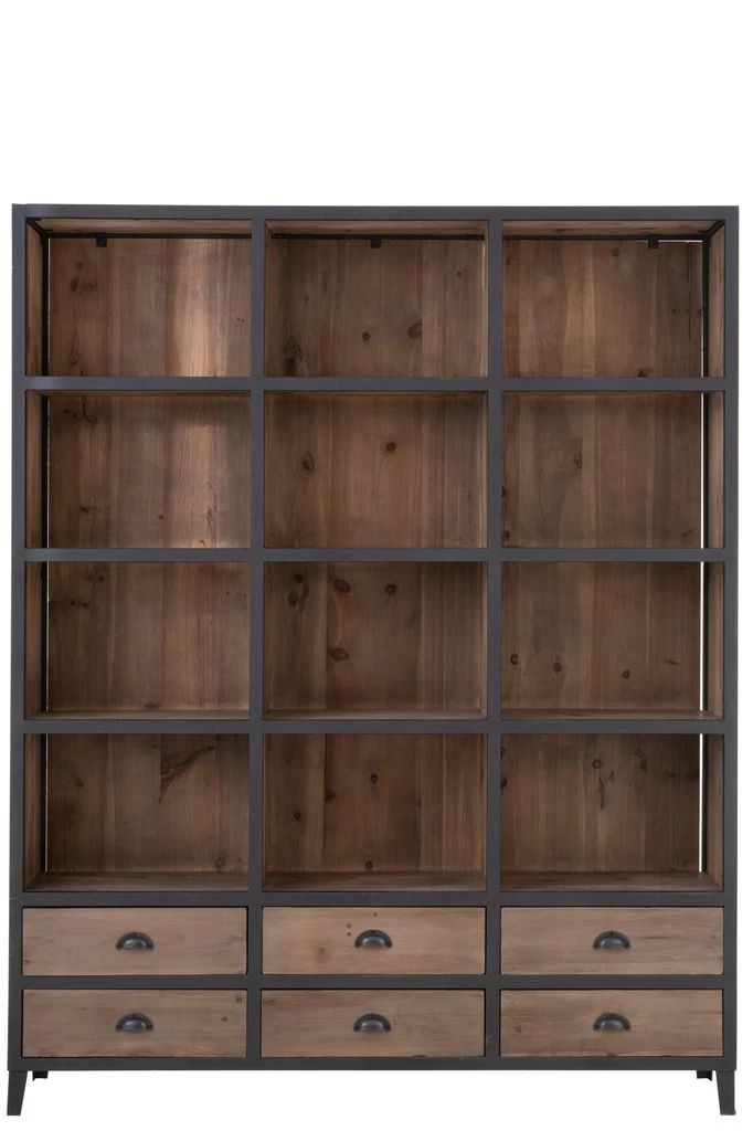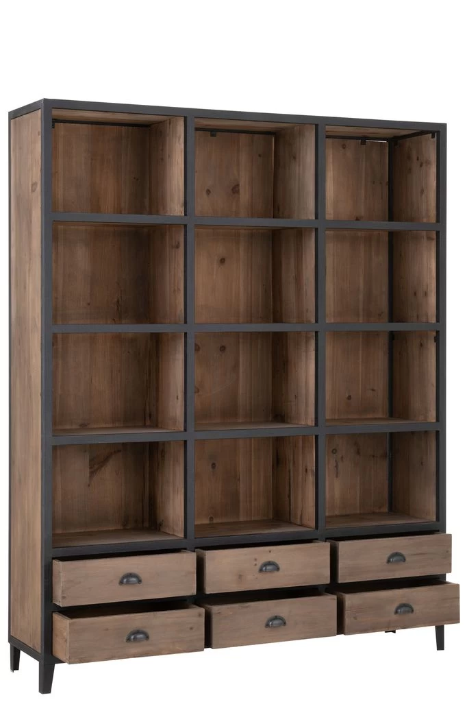 BOOKCASE 12 COMPARTMENTS 6 DRAWERS WOOD/METAL NATURAL/BLACK
