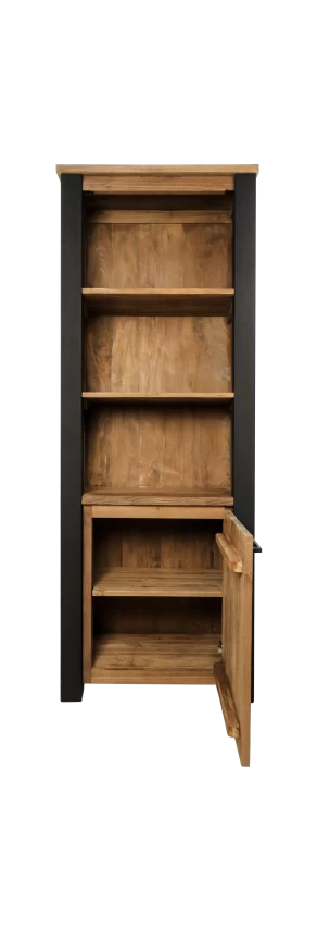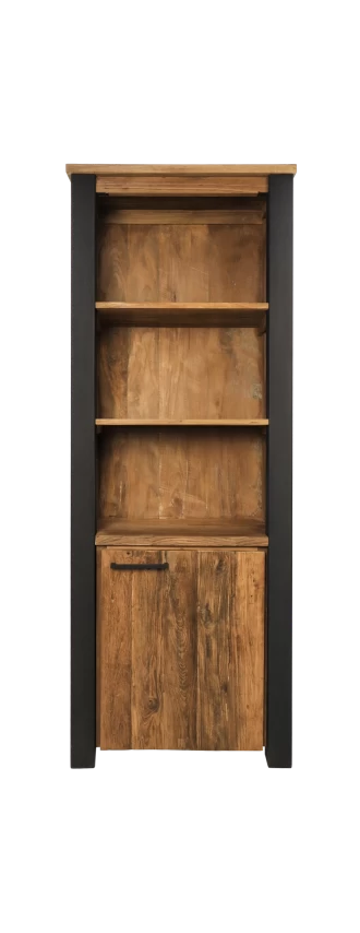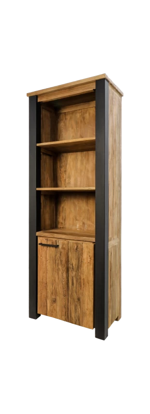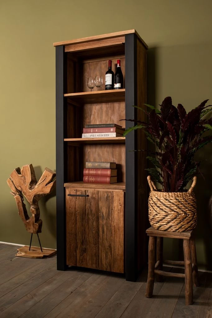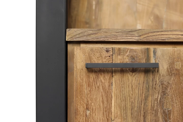 Boekenkast Atlanta van De Kistenkoning is gemaakt van rustiek oud teakhout en heeft een mooie doorleefde uitstraling. In combinatie met de metalen randen krijgt deze stoere opbergkast een haast industriele look.