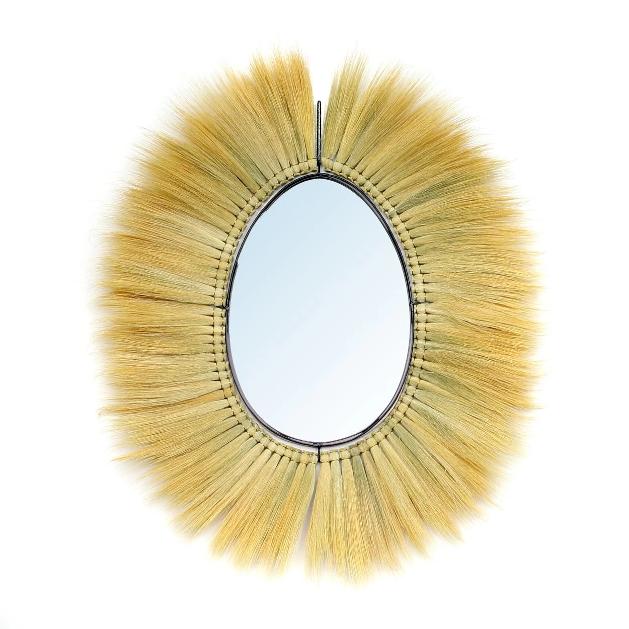 De Royal Mirror, versierd met natuurlijk gras, heeft een ovale vorm die een mooie boho touch aan uw interieur geeft.