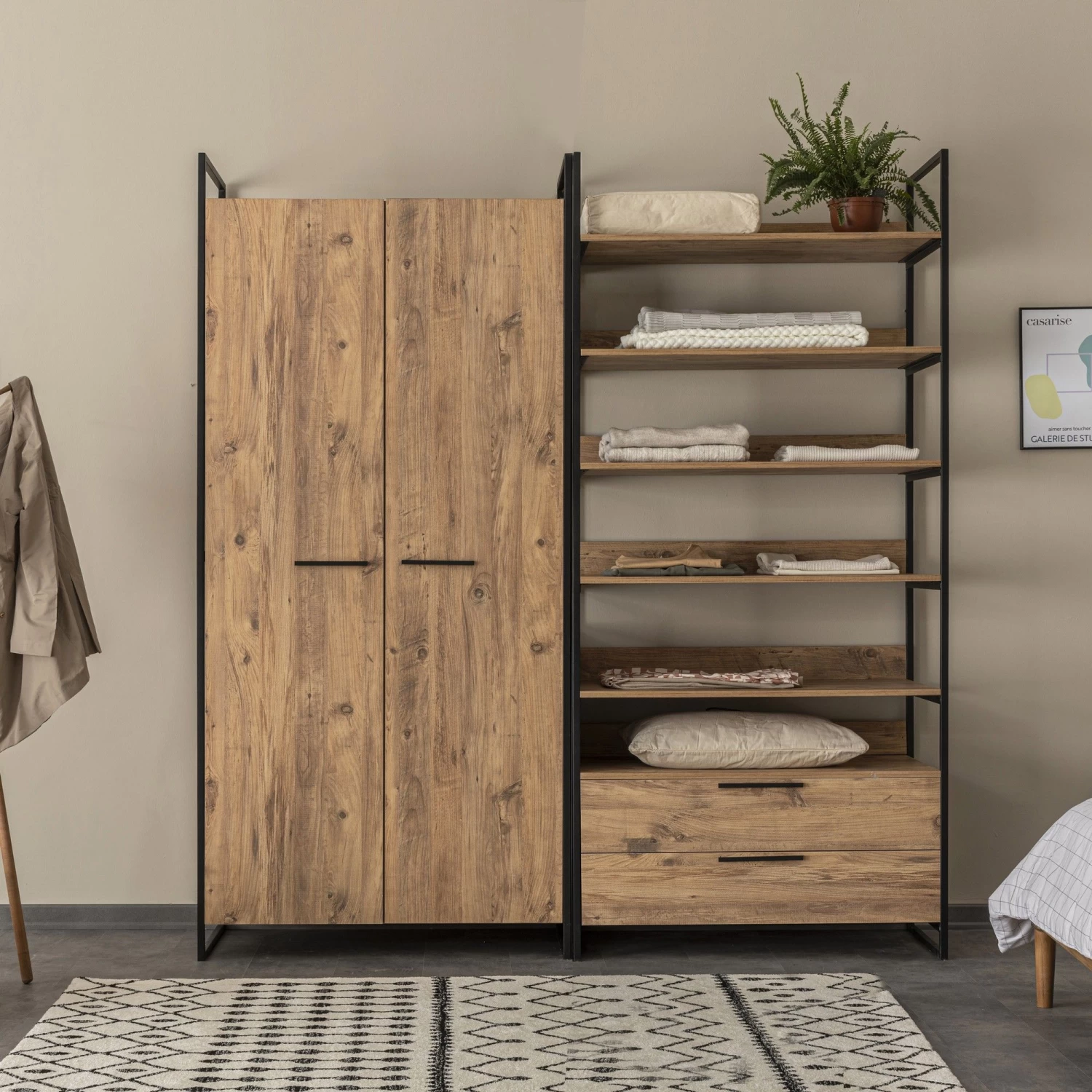 Kledingkast 2: Width: 104 cm Height: 225 cm Depth: 52 cm