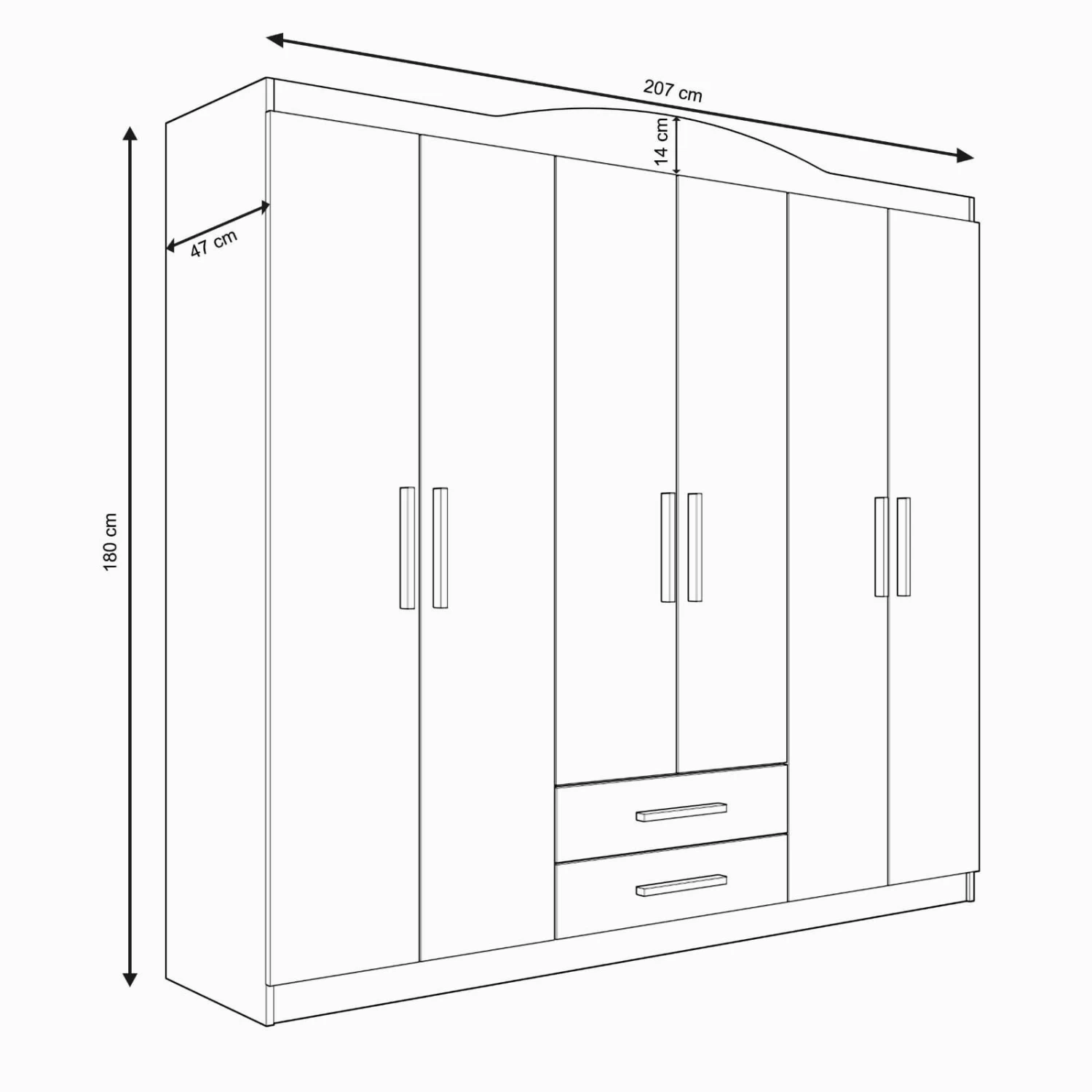 Kledingkast Size: Width: 207 cm Height: 180 cm Depth: 47 cm