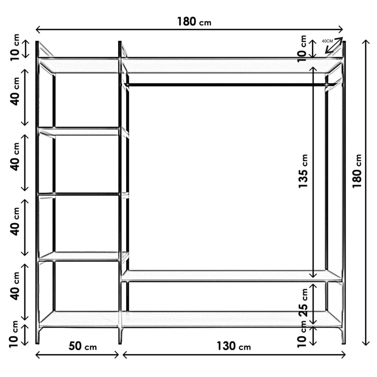 Width: 180 cm Height: 180 cm Depth: 40 cm
