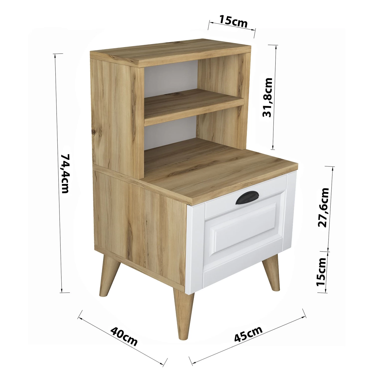 Total Size: Width: 45 cm Height: 74,4 cm Depth: 40 cm