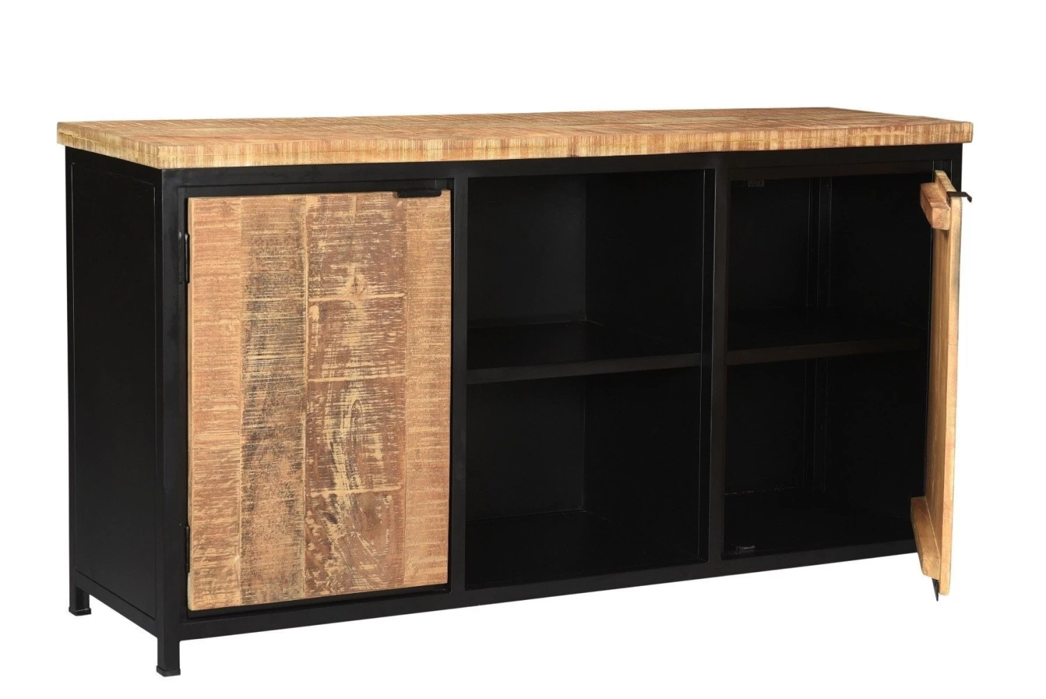 Deze mooie dressoir gemaakt van naturel hout en zwart metaal is alles wat jij nodig hebt in jouw interieur. Door het stoere uiterlijk kun je deze kast combineren met velen stijlen. De dressoir is een eenvoudig meubel waar je gemakkelijk al je spullen in kwijt kunt.