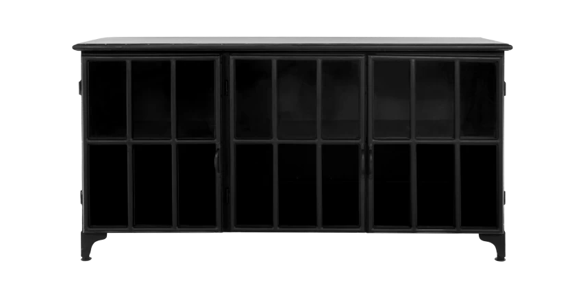 Dit industriële dressoir Manhattan van De Kisten Koning biedt ruimte om uw mooiste pronkstukken in tentoon te stellen. Door de deurtjes van glas komen de accessoires mooi naar voren. Het dressoir Manhattan is vervaardigd uit zwart metaal en heeft een ruwe afwerking. Dit geeft de kast een robuuste mooie vintage uitstraling. Ontdek voor een harmonieus ingerichte woonkamer ook de kleine kast en de bijpassende vitrinekast