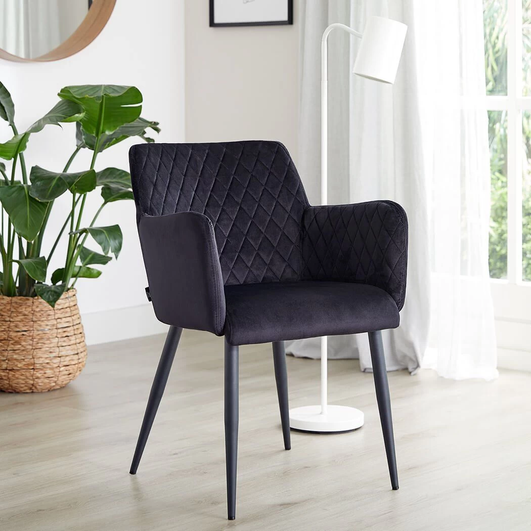 De Rose Velvet eetkamerstoel is bekleed met een prachtige fluwelen stof, de trend van dit moment. Het materiaal is niet alleen trendy, maar geef de stoel ook een luxe uitstraling. Doordat de rug- en armleuning aan de binnenkant een subtiel ruitmotief bevatten, krijgt deze stoel ook een klassieke uitstraling. Waardoor de eetkamerstoel gemakkelijk is te plaatsen in verschillende interieurs.