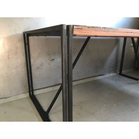 Eettafel Double van “Dubbele metalen kokers” en hardhout.