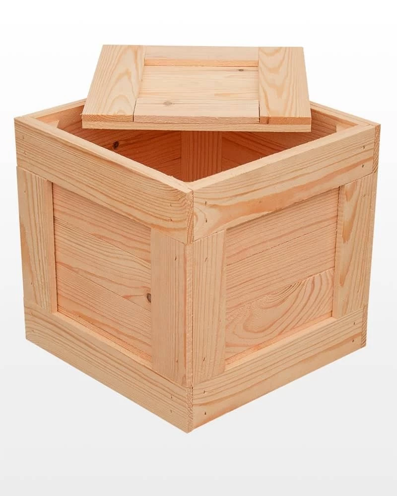 Kleine natuurlijke kubusdozen worden veel gebruikt voor het decoreren van etalages, diepe planken en het bewaren van groenten