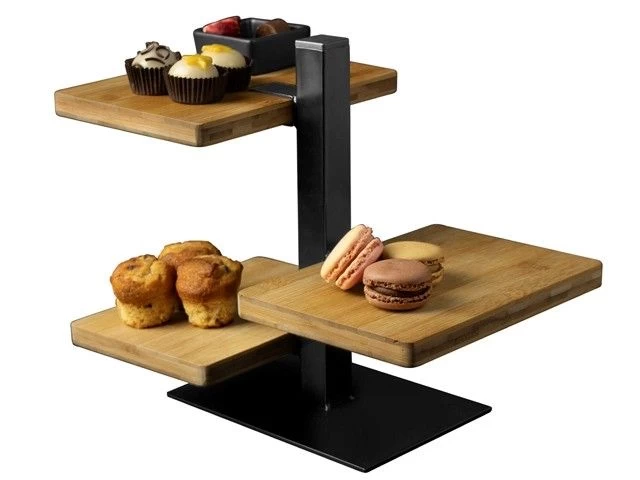 Serveertray 3 laags met bamboe plankjes één zwart keramieken bakje