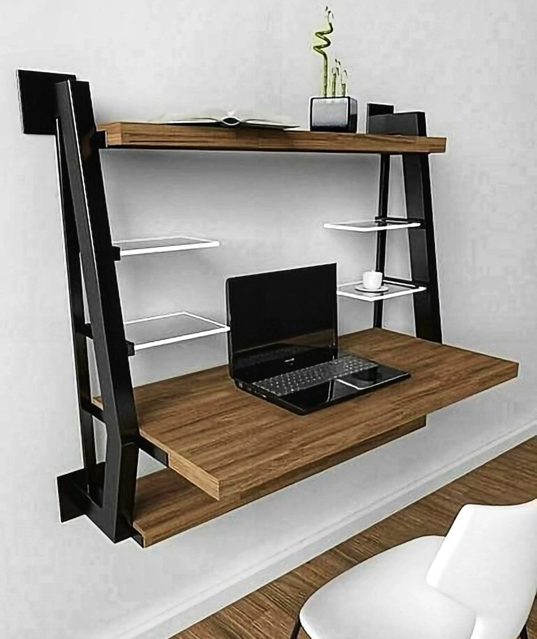 Het industrieel wandmeubel bureau is een handige ophangbureau voor aan de wand. Het staal is behandeld in mat zwarte coating.