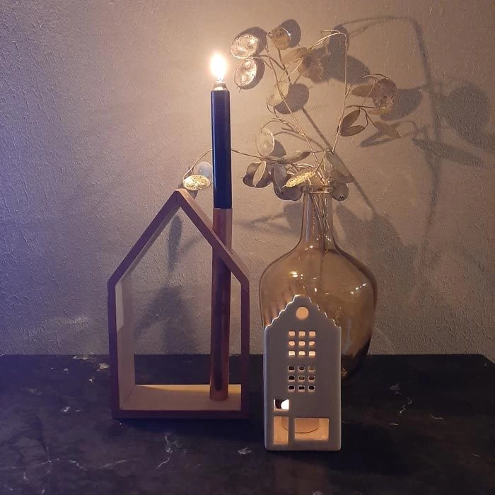 In de schoorsteen kun je een kaars doen, maar hij kan natuurlijk ook prima zonder. Het huisje van hout wordt in verschillende kleuren geleverd, zo is er altijd wel iets passends voor jouw interieur. Ga je toch liever voor iets anders? Neem dan een kijkje op onze website, we hebben ook toffe geometrische vormen voor tijdens de kerst!