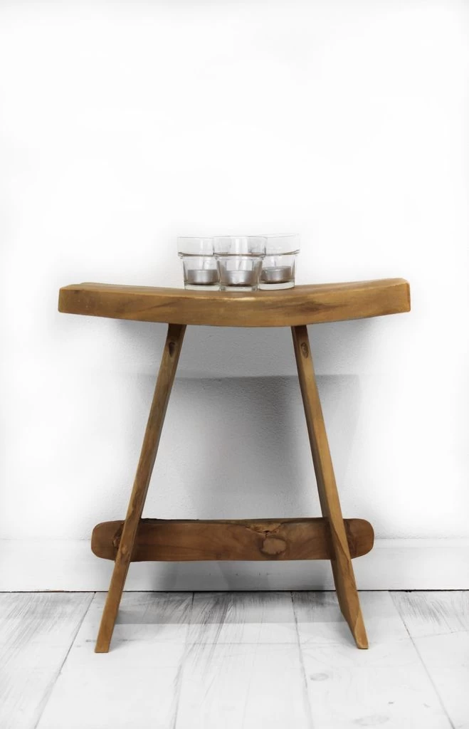 Waan je in een afgelegen houthakkershuisje met deze landelijke kruk van teakhout van De Kisten Koning. De natuurlijke houtvormen van de zitting en de poten zorgen voor een ambachtelijke uitstraling die in elke woonkamer perfect tot zijn recht komt.
