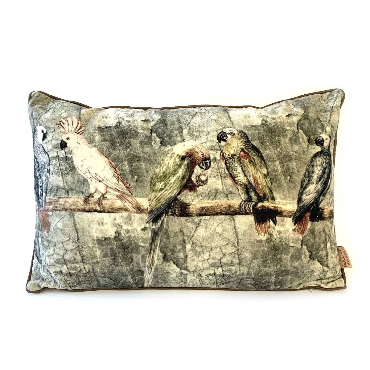 Dit kussen met elegante exotische vogel print is absoluut eigentijds. Het is een echte blikvanger in uw interieur