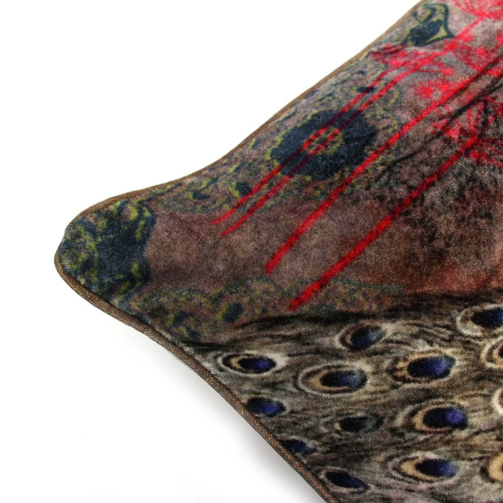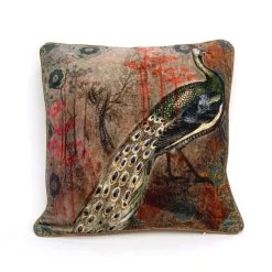 Dit kussen met pauw motief heeft een exotische uitstraling. Als je naar dit kussen kijkt, krijg je zin in vakantie! Leg het kussen in een stoel of op je bank. Haal de natuur in huis. We houden van zijn fluweelzachte gevoel. Onze tip: kies rotan meubels en maak de tropische sfeer compleet!
