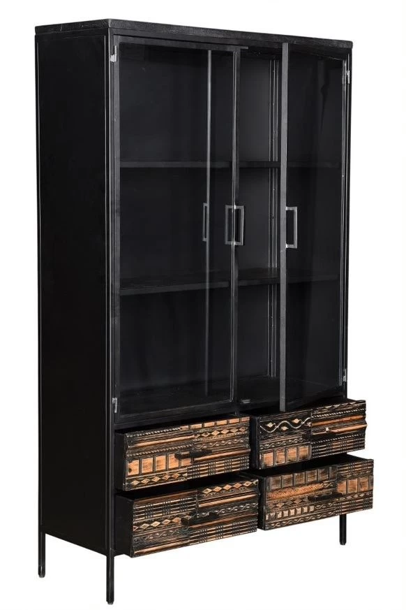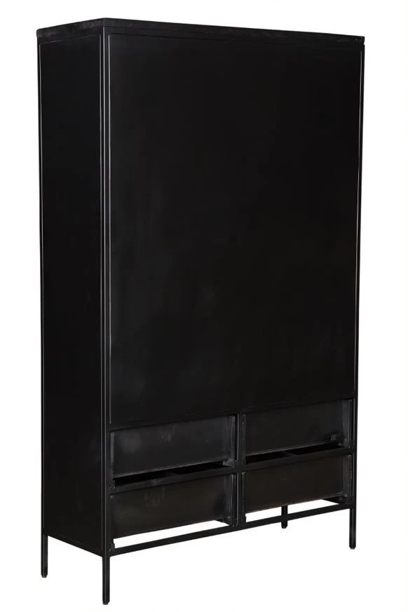 Malibu Kast 2 Deur 4 Lade Afmetingen: 120x40x190 cmMateriaal: Staal/ glas / mangohoutLevertijd: 7-10 werkdagen