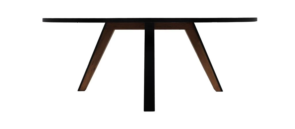 De ovale eettafel van De Kistenkoning is gemaakt van acasiahout en metaal. Door de unieke draad van het hout heeft ieder meubelstuk uit acasiahout een bijzondere en individuele uitstraling. Het hout staat bekend om zijn fijne nerf met prachtige warme vlam tekeningen in diverse kleurschakeringen. Het hout is licht tot donker goudbruin waar ook gele en roze strepen doorheen kunnen lopen. Het blad is 4 cm dik en heeft een zwart gecoatete afwerking welke het blad extra stoer maakt. De ovale vorm van het blad zorgt ervoor dat de stoelen gezellig richting elkaar gedraaid staan om de tafel, waardoor deze goed past in de meeste interieurs. Deze tafel is behandeld met een lak, die een eerste preventieve bescherming laag geeft”.