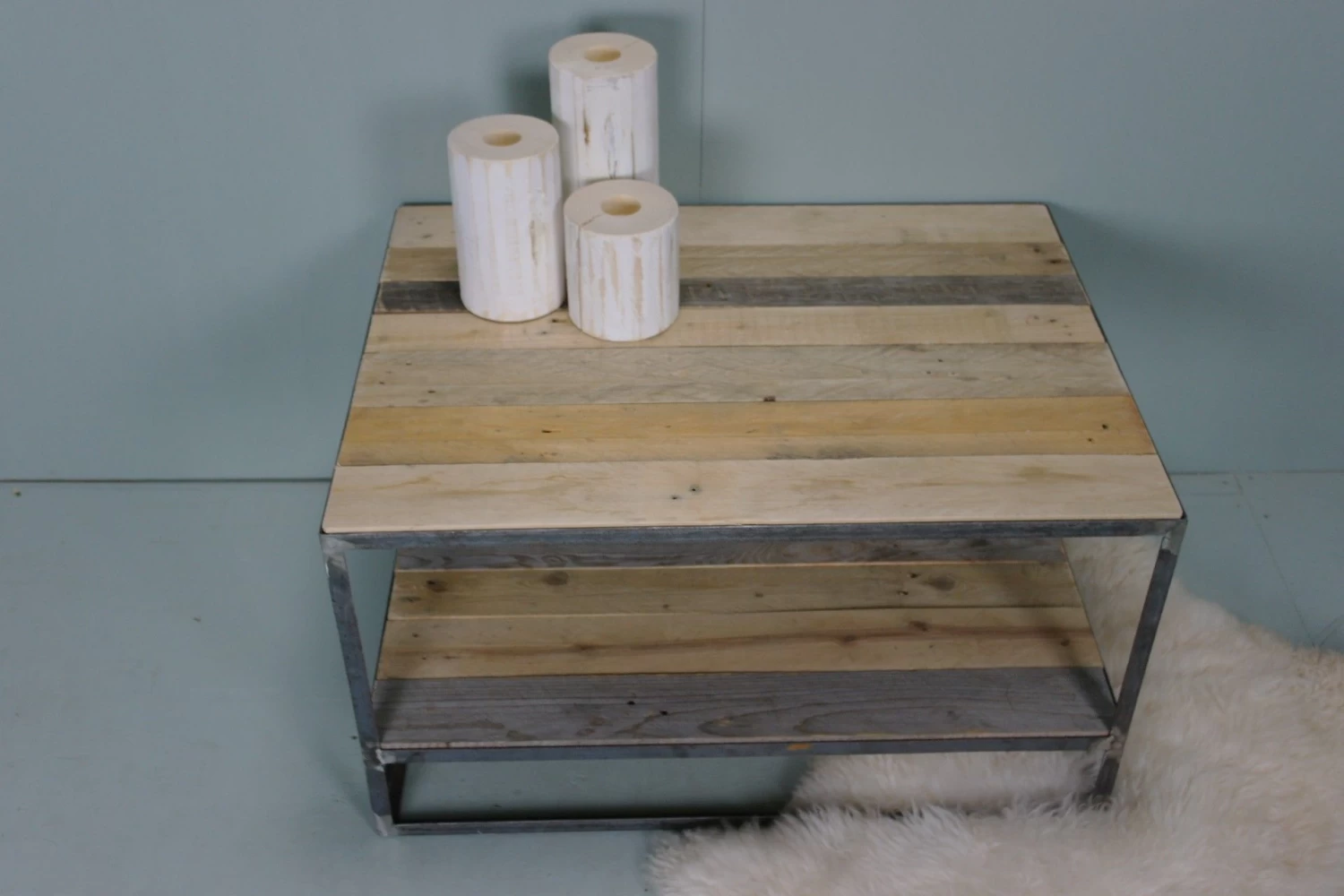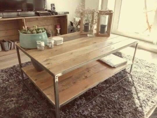 Metalen salontafel Noflik met een sloophouten blad! Door het slanke metalen onderstel heeft het een scandinavische stijl met een vleugje vintage!