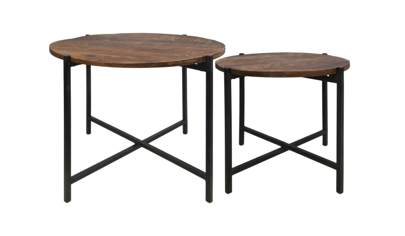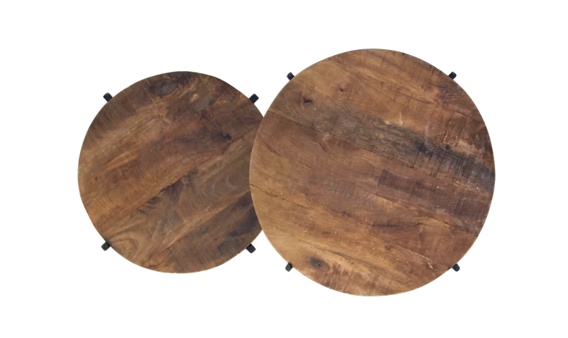 Met deze salontafels haal je een multifunctionele set van tafels in huis! De set combineert twee mooie salontafels die apart als bijzettafel gebruikt kunnen worden of gezamenlijk als salontafel. De twee salontafels hebben afzonderlijk de volgende maten; groot: 60 x 60 x 45 cm, klein: 45 x 45 x 38 cm. De salontafels zijn gemaakt van mangohout met een robuust stalen onderstel. De driedelige set heeft praktische mogelijkheden om ze op te bergen, omdat de tafels perfect in elkaar te schuiven zijn. De salontafels zijn handgemaakt waardoor geen twee stukken identiek zijn. Omdat ze handgemaakt zijn, kunnen er kleine oneffenheden voorkomen. Echter maakt dit juist iedere salontafel tot een unicaat met een authentiek karakter! Let op: het tafelblad is ruw geschraapt. Dit resulteert in een een grof blad met structuur en het blad is daarom niet vlak.