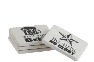 Set van 4 stoere onderzetters met 4 verschillende opdrukken. (Leverbaar vanaf 28 september)