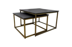 Vierkante Salontafel Finnley – 70×70 Cm – Black Wash/antique Gold – Set Van 2