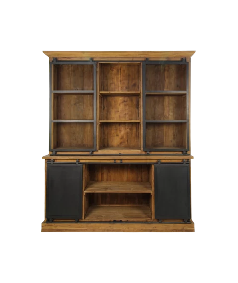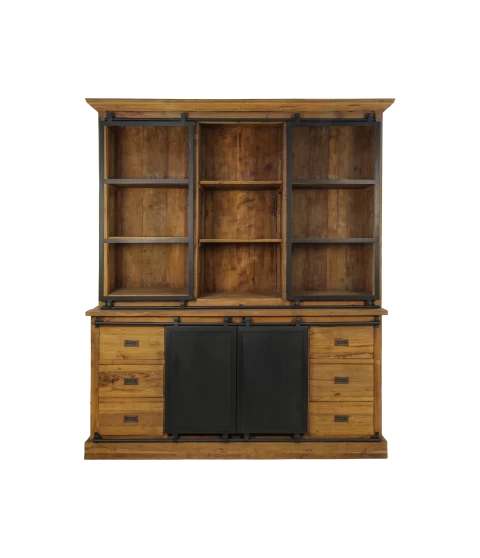 Voeg wat extra opbergruimte toe aan je huis met deze prachtige wandkast Blackburn. De kast is handgemaakt van oud reclaimed teakhout en heeft een rustieke afwerking. Deze houten kast heeft 6 lades en drie legplanken achter de dubbele glazen schuifdeuren.