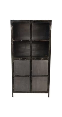Deze industriële vitrinekast Brooklyn van De Kistenkoning biedt ruimte om uw mooiste pronkstukken in tentoon te stellen. Door de deurtjes van glas komen de accessoires mooi naar voren en achter de glazen deuren is er genoeg opbergruimte waar je alles snel