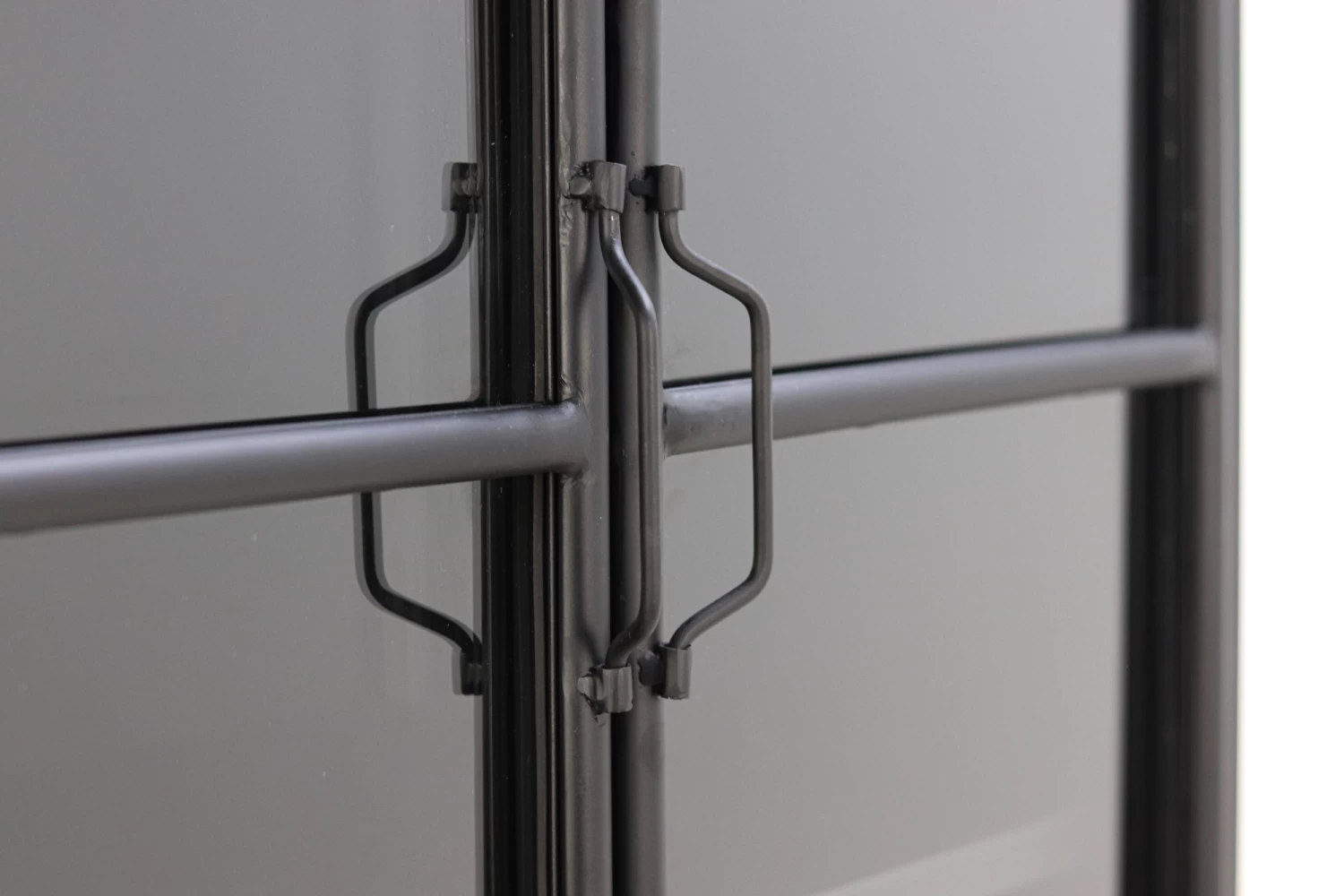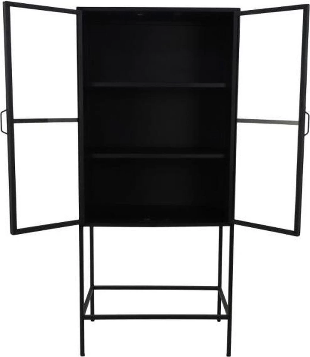 Deze industriële vitrinekast Manhattan van De kistenkoning biedt veel ruimte om uw mooiste pronkstukken in tentoon te stellen. Door de deurtjes van glas komen de accessoires mooi naar voren. De vitrinekast Manhattan is vervaardigd uit zwart metaal en heeft een ruwe afwerking. Dit geeft de kast een robuuste mooie vintage uitstraling. Ontdek voor een harmonieus ingerichte woonkamer ook het bijpassende dressoir en de kleine kast.