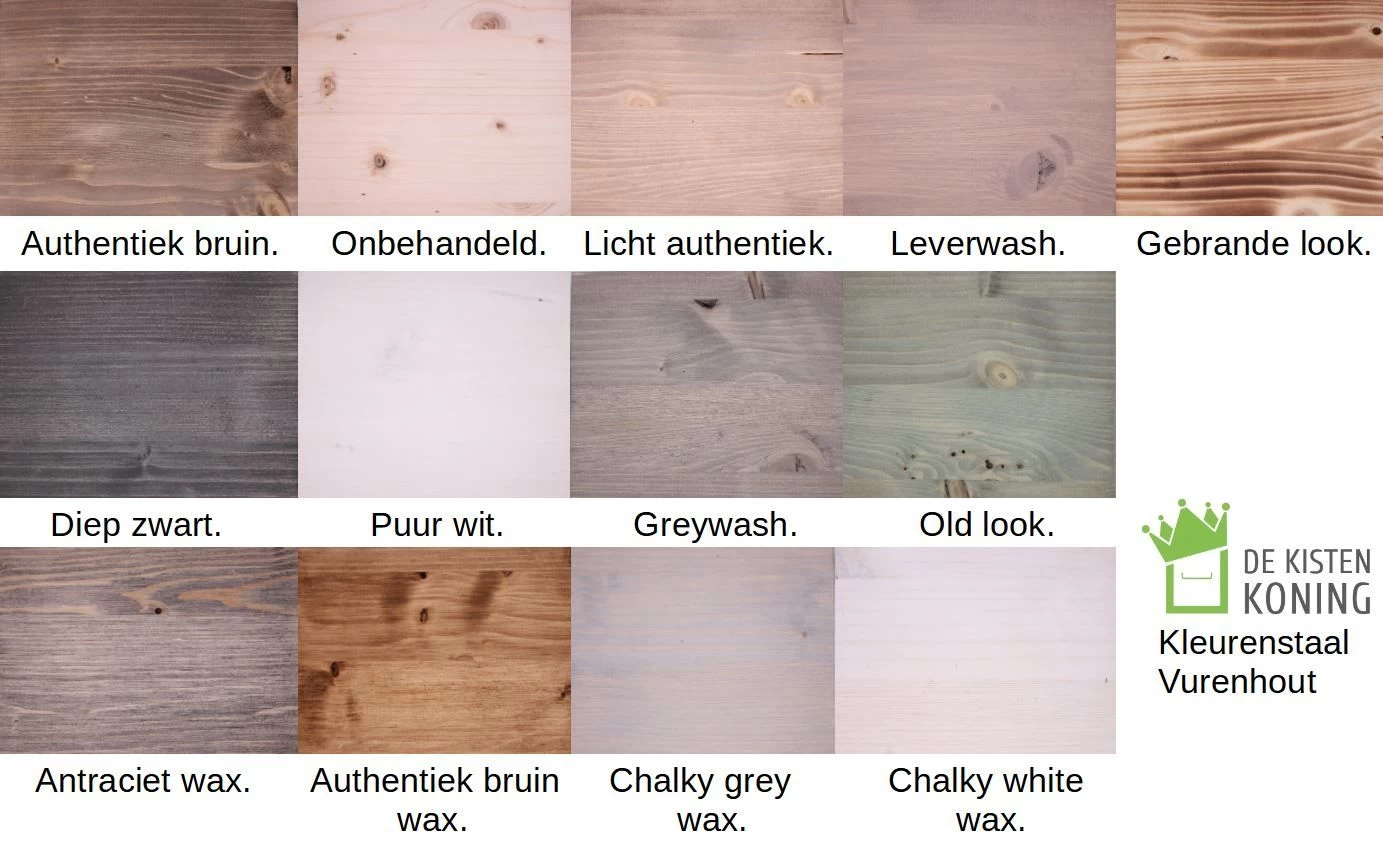 De planken zijn gemaakt van nieuw steigerhout en kunnen in verschillende kleuren worden afgewerkt.