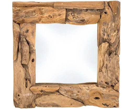 haar te halen, of uitgebreid je make-up op te doen. De lijst is gemaakt van losse stukken teakhout, die het geheel een natuurlijke uitstraling geven. De binnenmaat van de spiegel is 30×30 cm. De spiegel wordt geleverd zonder bevestigingsmateriaal. Omdat