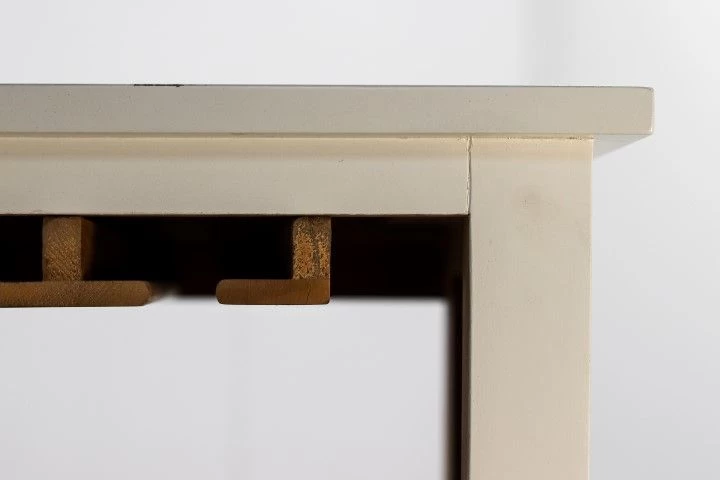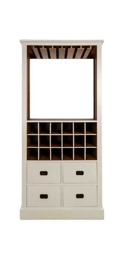 Voeg wat extra opbergruimte toe aan je huis met deze prachtige wijnkast. De kast is handgemaakt van hout en heeft een rustieke afwerking. Deze houten kast heeft maar liefst 18 wijnvakken en 4 lades. Aan de 6 haken kunnen wijnglazen worden opgehangen.