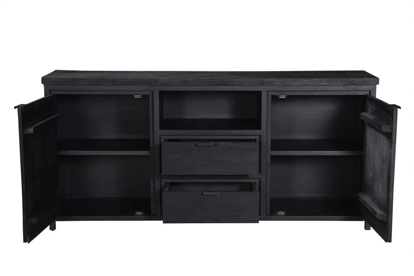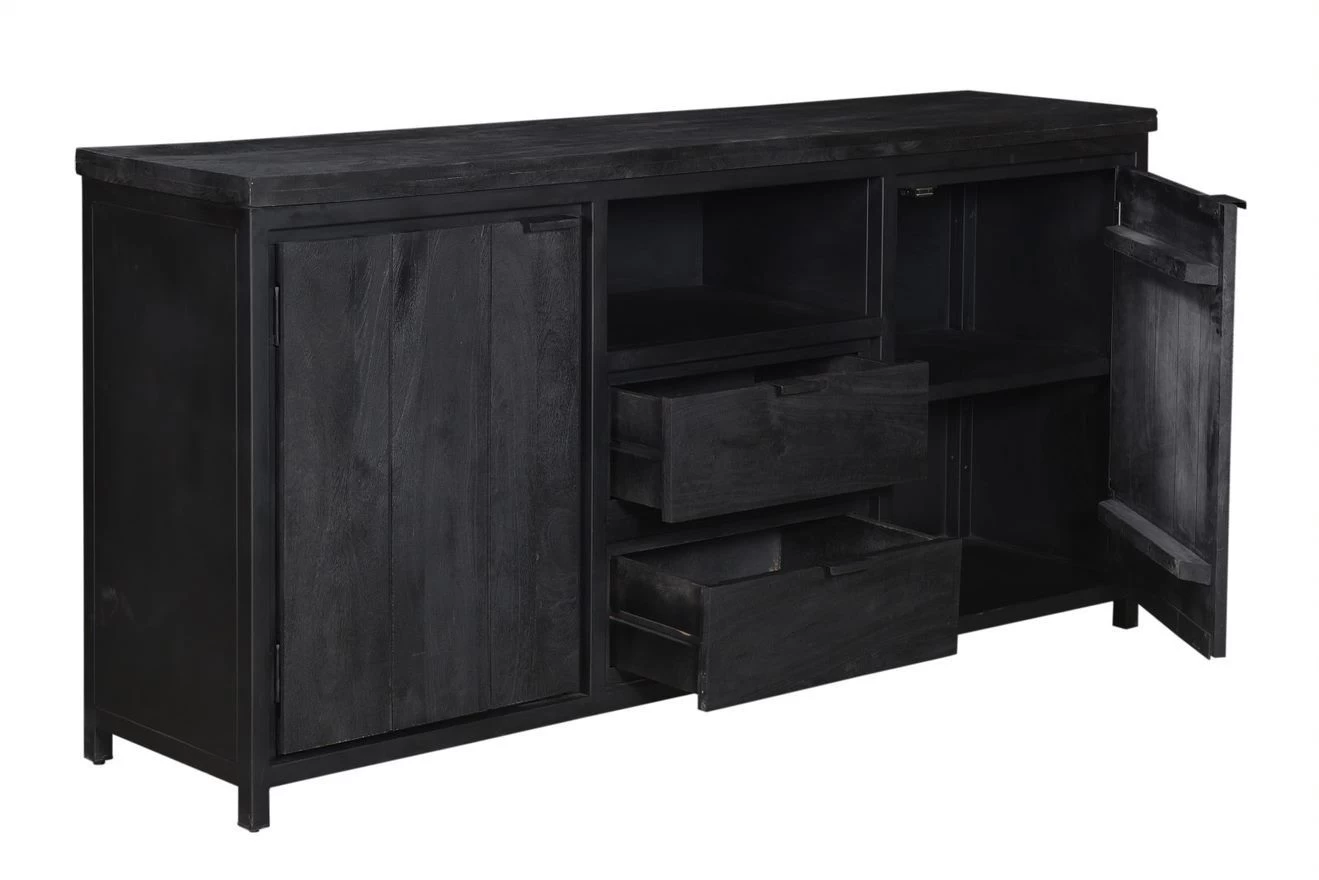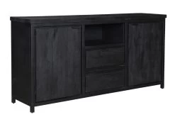 Deze mooie dressoir gemaakt van hout en zwart metaal is alles wat jij nodig hebt in jouw interieur. Door het stoere uiterlijk kun je deze kast combineren met velen stijlen. De dressoir is een eenvoudig meubel waar je gemakkelijk al je spullen in kwijt kunt.